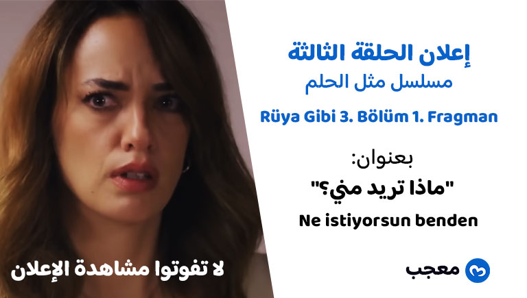 تم الكشف عن إعلان الحلقة الثالثة من مسلسل مثل الحلم (Rüya Gibi) وسط ترقب كبير من عشاق المسلسل الدرامي الرومانسي. الإعلان يحمل عنوان: “ماذا تريد مني!” على قناة شو تي في التركية.